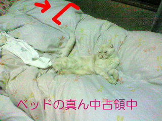 事務所のクーラー変えたとたん、涼しくなりやがった。。今年は秋が早いですなぁ。 ベッドの真ん中占領 |