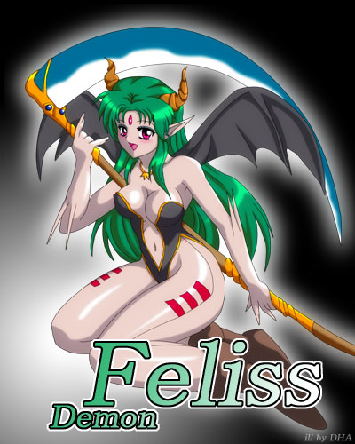(2001/10/24)(65KB) NEW! DHAさんから、フェリスのイラストを頂きました。 ・・・すごく上手いです。HP運営しててよかった(笑)。 暗い空間にポウッと浮かんでいる姿が、フェリスらしさをよく表しています。 こういった本来の悪魔っぽさを発揮する機会は、ゲーム中では見れませんが(泣) このCGを贈ってくださったDHAさんのホームページはこちらです。 |